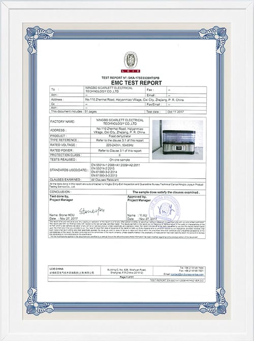 Los certificados incluyen informes de pruebas EMC, LFGB y RoHS; también apoyamos las pruebas previas a la conformidad y la preparación de expedientes técnicos para una entrada sin problemas en el mercado. Todas las certificaciones se coordinan con laboratorios acreditados y se documentan para envíos OEM/ODM.